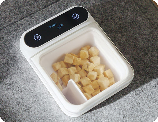 The automatic snack feeder conveniently stores freeze-dried, air-dried, and biscuit foods.