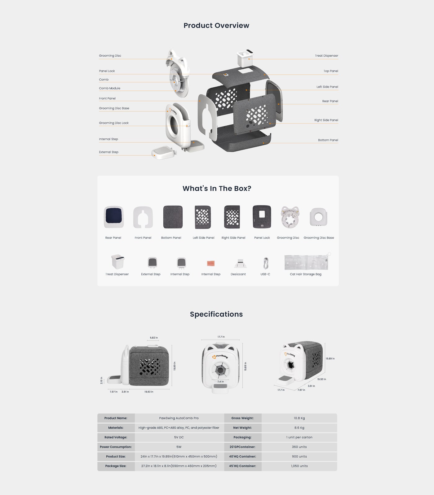 PawSwing AutoComb is completely driven by the cat's own kinetic energy, completely eliminating potential safety hazards such as leakage, fright, or mechanical pinches that may be caused by electronic products.