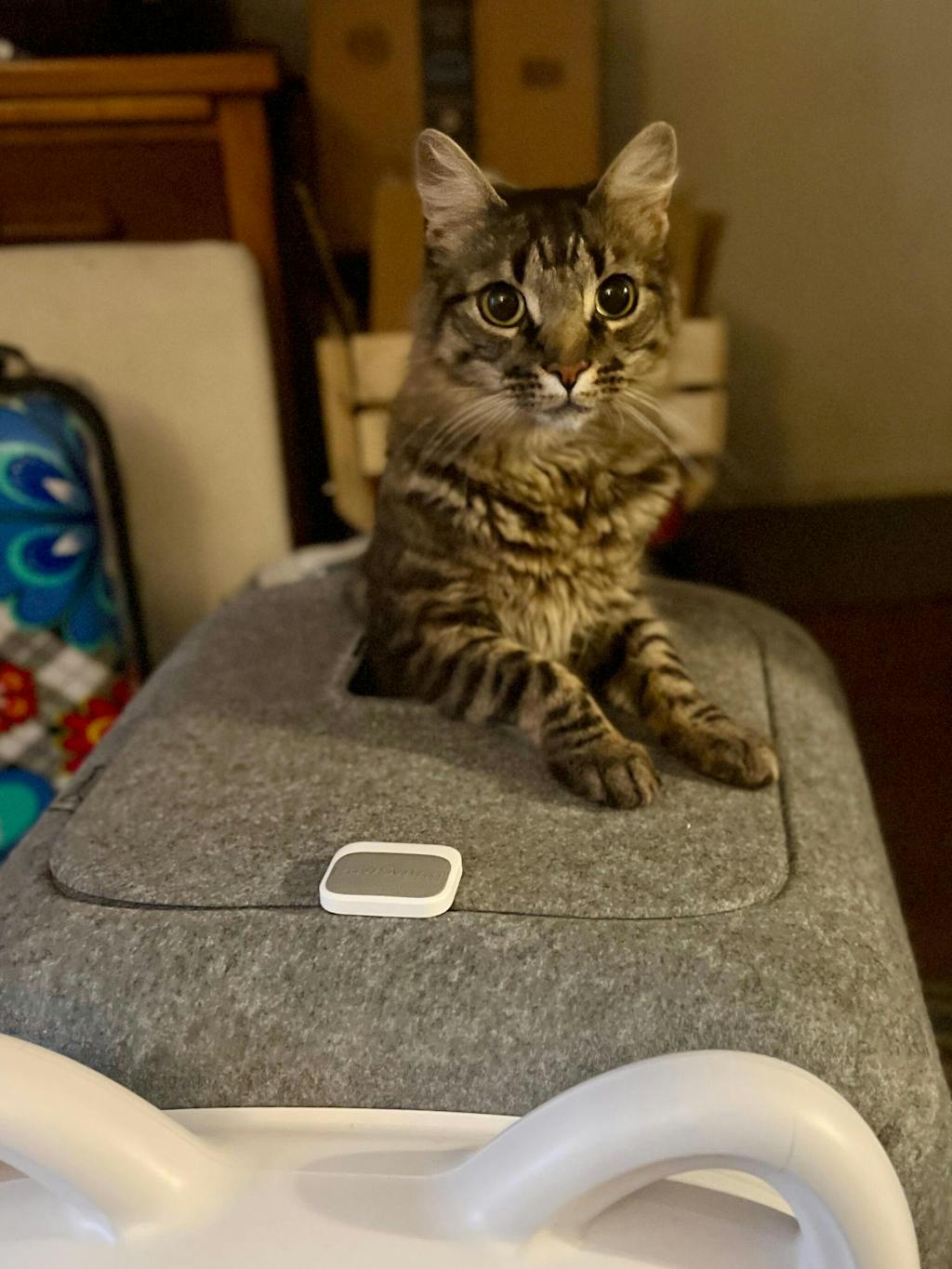 PawSwing automatic cat self-groomer comes equipped with sensors to track grooming activity.