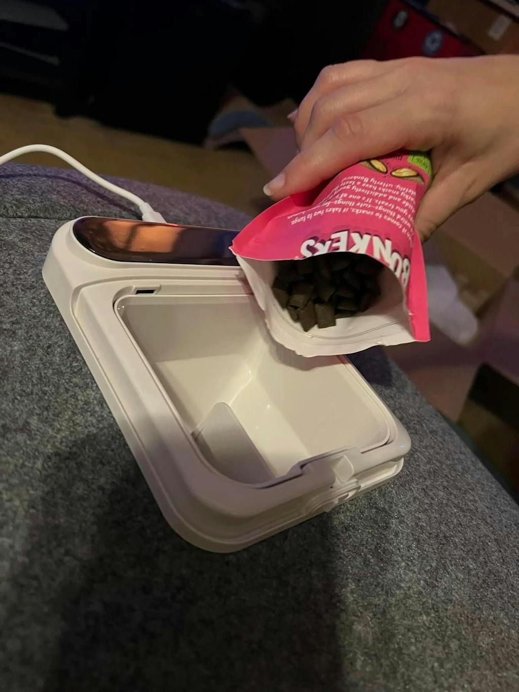 The automatic snack feeder conveniently stores freeze-dried, air-dried, and biscuit foods.